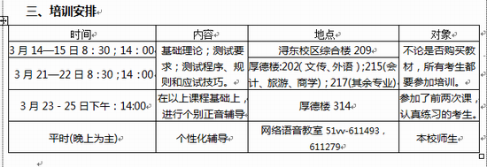 四、培訓(xùn)方式:面對(duì)面培訓(xùn)與網(wǎng)絡(luò)教學(xué)結(jié)合,請(qǐng)大家多參與交流,盡量不要閉門(mén)獨(dú)自練習(xí)。面對(duì)面培訓(xùn)分為集體上課和個(gè)別輔導(dǎo);網(wǎng)絡(luò)培訓(xùn)包括暢言網(wǎng)測(cè)試和到語(yǔ)音教室與老師語(yǔ)音交流。
