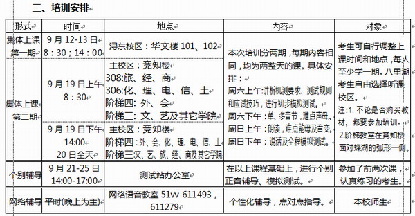 四、培訓方式:面對面培訓與網絡教學結合,請大家多交流,盡量不要閉門獨自練習。面對面培訓分為集體上課和個別輔導;網絡培訓包括暢言網和到語音教室與老師語音交流。