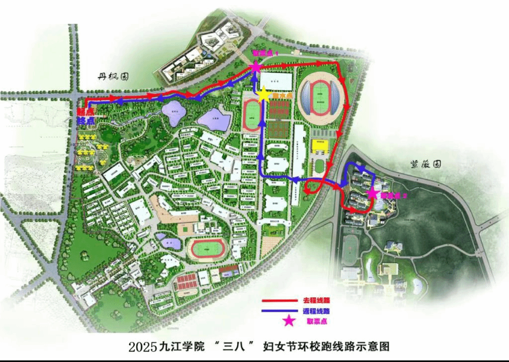 4.比賽中必須按照規(guī)定路線,依次在田徑館北側(cè)和新校區(qū)學(xué)生生活二區(qū)中間路段設(shè)置2個(gè)取票地點(diǎn),參加活動(dòng)的女教職工需在取票點(diǎn)核驗(yàn)校園卡,領(lǐng)取經(jīng)過(guò)票。