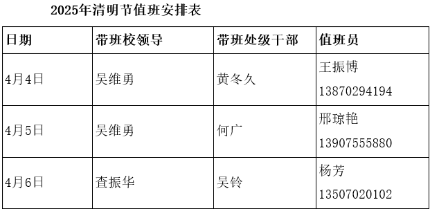 根據《國務院辦公廳關于2025年部分節假日安排的通知》(國辦發明電〔2024〕12號)精神,結合學校實際,現將清明節放假安排通知如下: