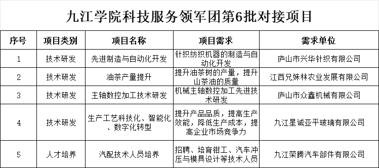 為貫徹落實(shí)《九江學(xué)院服務(wù)九江經(jīng)濟(jì)社會發(fā)展三年行動計(jì)劃(2024-2026)》(九院黨字〔2024〕66號)文件要求,通過科技服務(wù)領(lǐng)軍團(tuán)對廬山市經(jīng)濟(jì)社會發(fā)展相關(guān)需求進(jìn)行征集,確定以下5項(xiàng)為第6批社會服務(wù)項(xiàng)目,現(xiàn)面向全校發(fā)布項(xiàng)目信息。