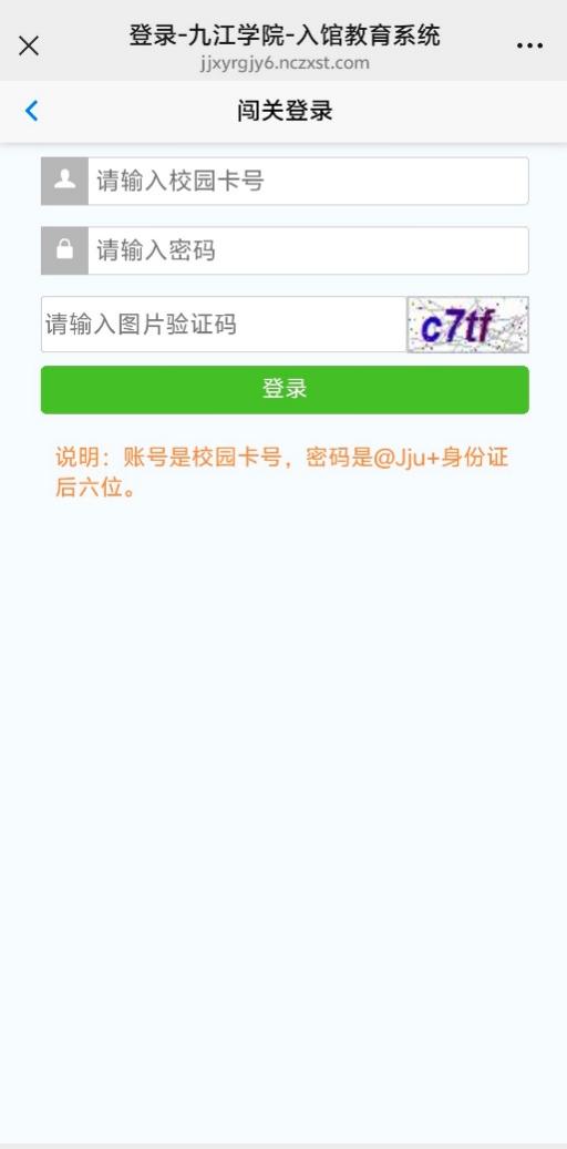依次點擊“開始闖關”“點擊登錄”“點擊新生登錄”圖標,進入“闖關登錄”頁面。闖關登錄,輸入校園卡號和密碼(密碼格式:“@Jju+身份證后六位”)。