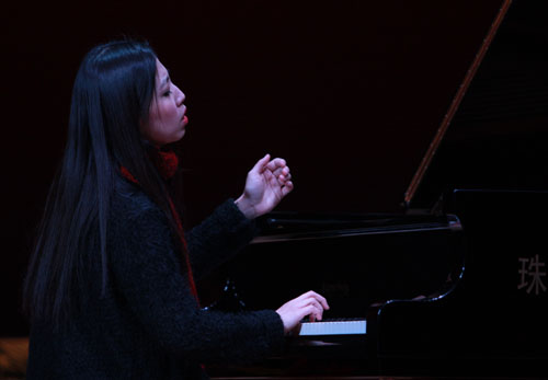 主持人向大家介紹了韓卉菁博士的主要成長經歷后,音樂會在韓卉菁博士鋼琴獨奏莫扎特的《幻想曲》中拉開帷幕。行云流水般的彈奏讓在場聽眾無不陶醉其中,一曲奏畢,韓卉菁博士就贏得了臺下聽眾雷鳴般的掌聲。在相繼演奏完李斯特改編舒曼藝術歌曲《獻詞》、《魔王》,莫扎特的《c小調鋼琴奏鳴曲》及拉威爾的《悲哀鳥》、《優美的晨歌》后,音樂會在韓卉菁博士加演的《瀏陽河》旋律中畫上了圓滿的句號。