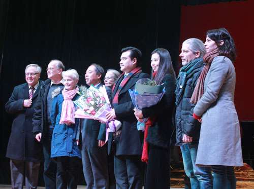 演出結束后,校長甘筱青博士與德國音樂家團隊一起上臺與韓卉菁博士合影留念。韓卉菁博士也與在場觀眾進行了親切的互動。今晚的音樂會給每一位九院師生都留下了難忘的回憶,也將給我校藝術學院的學生們留下深深的啟迪。