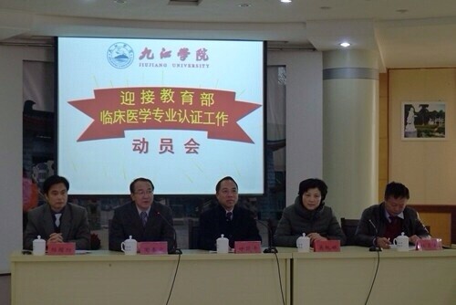 1月8日上午,學校在主校區一號會議組織召開了臨床專業論證工作動員會,校長甘筱青、副校長吳桃娥、陶春元、楊焱林、楊耀防,教務處等各相關處室負責人,公共課及相關課程授課單位負責人,醫學部及醫學各學院院長、書記、教學副院長、教務科長、學生科長、團委書記及基礎醫學院、臨床醫學院全部教研室主任,九江學院附屬171醫院、九江學院附屬景德鎮醫院、九江市一醫院、三醫院、九江市婦幼保健院科教辦負責人,臨床醫學專業認證工作領導小組成員,臨床醫學專業學生代表等80余人參加動員會,會議由陶春元副校長主持。