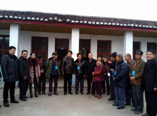 經過三個多小時的車程,甘校長一行抵達九宮村。武寧縣人大副主任陳緒洲陪同走訪慰問。在村部,甘校長聽取了鄉黨委趙書記關于村建扶貧的情況匯報,詢問了九宮村的基本情況、村民的生產和生活狀況、經濟收入來源等。當得知三年來學校對九宮村開展的幫扶所取得的成效,甘校長深感滿意。隨后甘校長一行來到九宮村新農村建設點,實地查看了村容村貌。