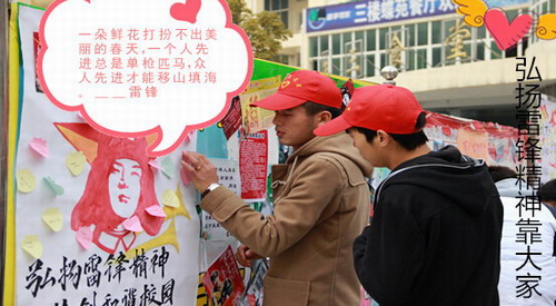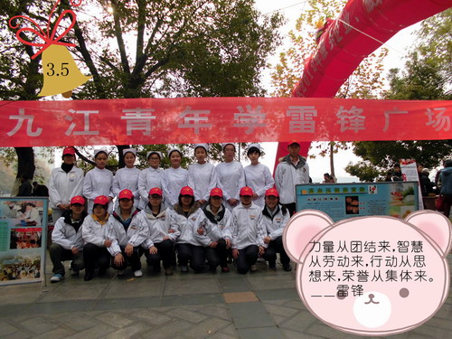 2015年3月5日是毛澤東“向雷鋒同志學習”題詞發表52周年紀念日。為推進學雷鋒常態化,凸顯學雷鋒活動成效,九江學院師生深入開展內容豐富、形式多樣的學雷鋒主題教育活動,積極開展以“青春志愿行 共筑九院夢”為主題的青年志愿者服務月活動,以實際行動傳遞當代雷鋒精神,弘揚志愿者精神,傳播志愿服務文化。