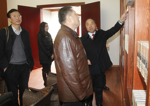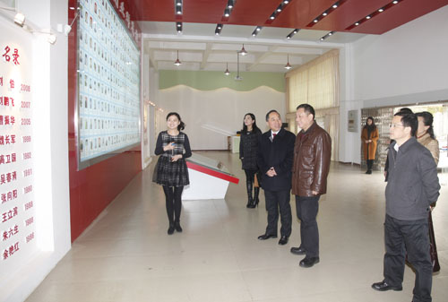 座談會(huì)前,在甘筱青校長的陪同下,呂玉琪一行先后參觀了陳寅恪紀(jì)念館、陶淵明展廳、廬山文化研究中心展廳、校友創(chuàng)業(yè)展廳及學(xué)校分析測試中心。