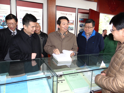 揭牌儀式結束后,鄭書記、甘校長陪同來校領導嘉賓參觀了兩南山廬山文化研究中心展廳、陶淵明研究展廳和陳寅恪研究院展廳。