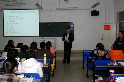 課堂上,段老師深入淺出的講解了審計風險模型、風險評估總流程、銷售與收款循環的主要活動及關鍵控制等內容,并配以PPT課件,通過和學生互動提問,較好的講解了審計風險評估的主要內容。