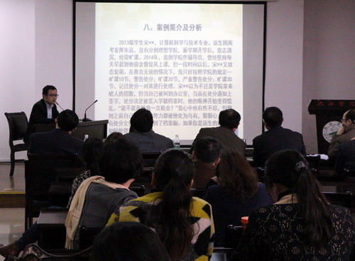 最后,復賽評委、電子學院黨委書記孫小明作了點評發(fā)言。他從解題思路、方法和技巧等方面分析了比賽中選手們的表現(xiàn)及不足,對輔導員進一步提高職業(yè)技能、提升學生管理工作水平有很強的指導作用。