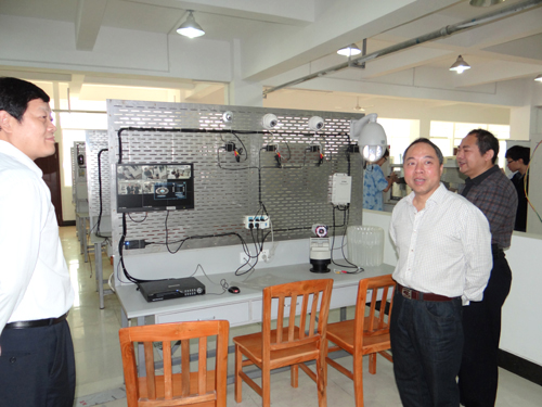 課程結束后,甘校長來到智能樓宇實訓室,在查看了師生自己動手涉及制作的實訓設備后,對電子工程學院師生的實踐能力給予了很高評價。甘校長指出,電子工程學院有能力承擔好學校正在安裝的學生宿舍電子安全門和分析測試中心電子門、電子屏幕等電子設備的制作安裝,此舉既可以為電子學院師生提供實踐平臺,節約了施工成本,又方便了電子設備的維修維護。他勉勵電子、土建、機材、信息等理工科學院積極主動地承擔起學校部分工程的設計制作工作。