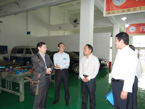 隨后,甘校長一行查看了機材學院汽車實訓基地和數控分析中心。