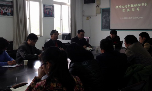 4月7日察哈爾學會秘書長、高級研究員柯銀斌應邀來到我校,做客我校第130期濂溪講壇,并到我校公共外交研究中心開展研討座談。