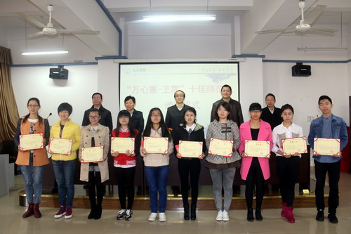 陶春元副校長(zhǎng)首先向獲得“萬(wàn)心蕙-王霈”十佳師范生的10位同學(xué)表示衷心的祝賀。他指出,教師是太陽(yáng)底下最光輝的職業(yè),與其他職業(yè)相比,教師首先有著更高的個(gè)人品德要求,也就是師德。其次有著更高的知識(shí)要求,尤其隨著現(xiàn)代社會(huì)的快速發(fā)展,網(wǎng)絡(luò)信息發(fā)達(dá),知識(shí)的來(lái)源非常豐富,作為當(dāng)代教師一定要做到與時(shí)俱進(jìn),所謂“教師要有長(zhǎng)流水,才能給予學(xué)生一碗水”。第三有著更高的教學(xué)能力要求,要有足夠的技能水平和方法使學(xué)生接受知識(shí)。而師范教育作為培養(yǎng)教師的專業(yè)教育也有更高的要求,在國(guó)際上也受到普遍重視,正因如此,美籍華人萬(wàn)心蕙教授及其丈夫王霈先生特別設(shè)立對(duì)師范生的專項(xiàng)獎(jiǎng)勵(lì)基金,以鼓勵(lì)我校學(xué)生為振興基礎(chǔ)教育事業(yè)發(fā)奮努力。希望我校的各位師范生能按照當(dāng)代教師的要求塑造自己、自我要求、自我進(jìn)步。希望各相關(guān)學(xué)院能進(jìn)一步進(jìn)行教學(xué)改革,提高師范專業(yè)教學(xué)水平,提高師范專業(yè)學(xué)生培養(yǎng)質(zhì)量,為社會(huì)培養(yǎng)出合格的師資。
