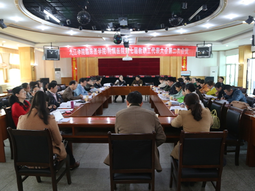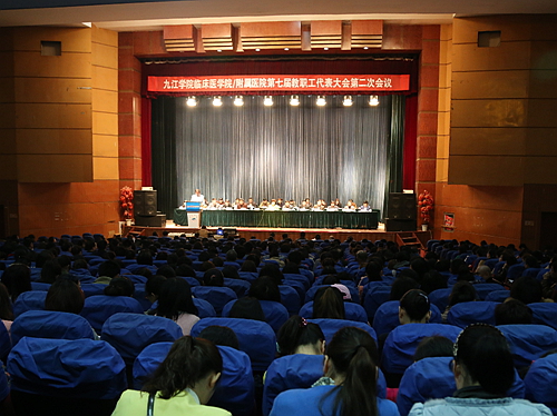 4月11日上午,臨床醫學院在廬峰校區大禮堂隆重召開第七屆教職工代表大會第二次會議。副校長吳桃娥、工會主席金葆金蒞臨大會,臨床醫學院班子、各科室職工代表、列席代表、教職工、學生代表等1000余人參加了大會。會議由臨床醫學院黨委書記張南華主持。