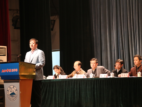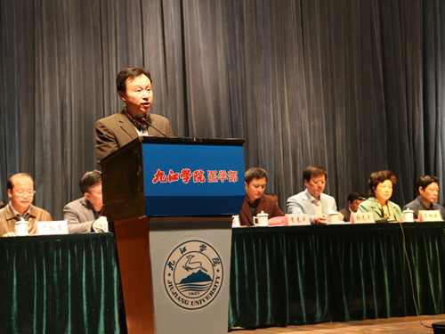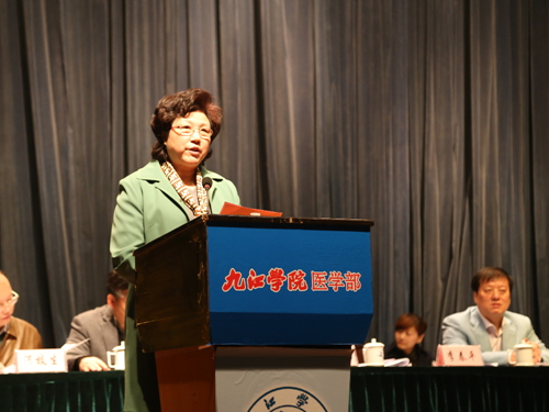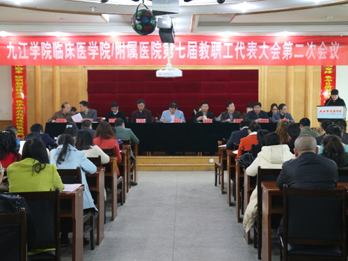 大會在莊嚴的國歌聲中拉開序幕。吳桃娥副校長致辭,她代表學校對臨床醫學院過去一年多來取得的成績表示誠摯的祝賀,對付出辛勤勞動的醫院廣大干部職工表示親切的慰問,對臨床醫學院各項事業的發展與建設表示會繼續給予高度重視和大力支持。吳副校長指出,過去一年,臨床醫學院按照學校黨政領導的工作部署和要求,強有力地抓執行力建設,堅持持續改進,不斷追求卓越,硬件和軟件水平都實現了質的飛躍,學科體系更加健全,醫教相長相互促進,全員育人卓有成效,醫療質量顯著提升,患者就醫體驗滿意,各項經濟指標穩步提高,醫院領導有決心,職工有信心,醫院精神面貌發生了巨大的變化,各方面工作都上了一個新的臺階。學校領導對我院求真務實、具有戰斗力、能謀事會干事且干成事的領導班子予以充分認可,對全院干部職工為醫院取得良好的社會效益和經濟效益付出的努力奮斗給予高度肯定,并在醫療質量、教學水平、醫院管理、就醫服務四個方面提出要求,希望2015年醫院干部職工要搶抓機遇、大干快上,在進一步加強內涵建設的同時,要加快新門診綜合大樓的建設、加快國家級全科醫生臨床培養基地的建成并投入使用、順利通過教育部對臨床醫學專業的認證評估和力爭臨床醫學專業碩士學位點的成功申報,又要把未來五年的發展規劃做好,相信臨床醫學院一定會全面實現既定目標,實現新時期的新發展、新飛躍。