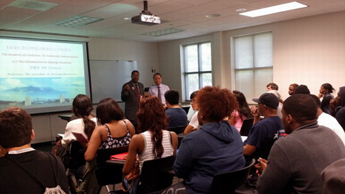 甘校長在講座后還向薩凡納州立大學的師生們介紹了九江學院的概況,專業特色等,對薩凡納州立大學的師生們去九江學院訪問和學習表示歡迎。在場師生看到九江學院美麗的人文景色,了解到學校開設的特色項目,紛紛表示希望能去九江學院深造就讀。