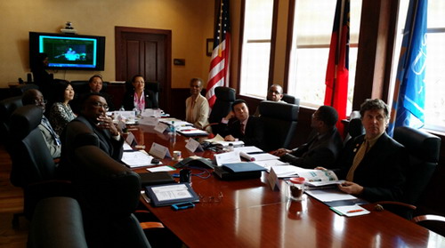 訪問期間,甘筱青校長會見了薩凡納州立大學校長Cheryl.D.Dozier博士,就兩校進一步開展多領域合作進行了友好交流和磋商,并對雙方加大交換生人數、啟動兩校合作辦學以及開展文化交流等項目達成共識。之后兩校共同召開了薩凡納州立大學孔子學院第三次理事會,會上,孔子學院中方院長羅其娟和外方院長布佩吉向理事會匯報了孔子學院啟動資金的決算報告和2015年的年度工作計劃和預算情況,同時也向理事會提出了孔子學院在運行中所遇到的問題和困難。理事會一一進行討論通過,并針對問題和困難給出解決方案。會議結束后,甘筱青校長向薩凡納州立大學圖書館、孔子學院、教育學院及部分教師捐贈了儒學專著和中文教材。