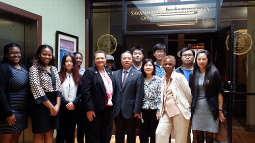 4月12日-14日,校長甘筱青攜漢語國際推廣辦公室余啟華副主任訪問了美國薩凡納州立大學及孔子學院。