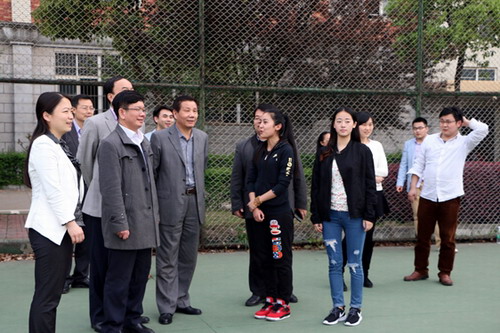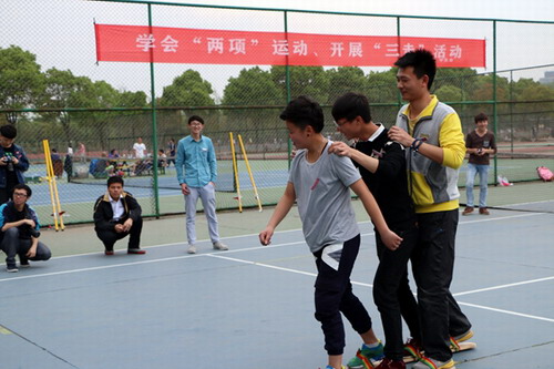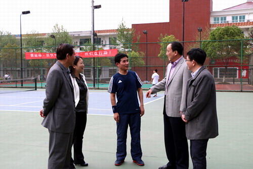 在室外網球場,大骨班學員正在開展“學會兩項運動·開展三走活動”主題特色活動。湯瑞琪副主任、朱漢浩副主席、王萬山副校長、校紀委魏立平書記、團市委宋曉妤書記等在學生處、校團委負責同志的陪同下,來到活動現場,觀看同學們“三走”活動。