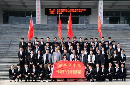 4月18日,我校2015年“向學青年”大學生骨干培訓班開班。共青團江西省委副書記廖良生、九江市人大常委會副主任湯瑞琪、九江市政協副主席朱漢浩、共青團九江市委書記宋曉妤、我校副校長王萬山等出席開班儀式并為班級授旗。儀式由校團委書記閆來英主持。
