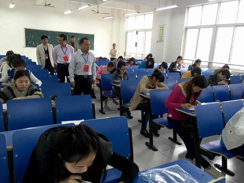 考試過程中,校長甘筱青、副校長陶春元親臨現(xiàn)場,并巡視了各考場。整個(gè)考試過程中,教務(wù)處工作人員嚴(yán)格按照全國高校專業(yè)英語測試辦公室的要求,選用安全、安靜、整潔、通風(fēng)、采光條件好的教室作為考場,按照考試規(guī)范張貼考場門貼和考生桌貼等標(biāo)示、布置考生座位間距,考場所在教學(xué)樓安排專人把守,無關(guān)人員一律不得入內(nèi)。所有監(jiān)考教師能夠認(rèn)真履行工作職責(zé),不包庇縱容考生作弊。