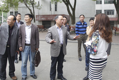 4月24日下午,甘筱青校長率領黨辦、保衛處、學生處、電子學院等部門負責人,來到潯東校區進行校園巡視。潯東校區管理辦公室、基礎醫學院負責人參加了巡視。