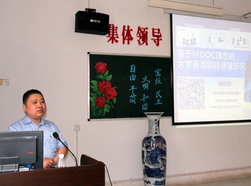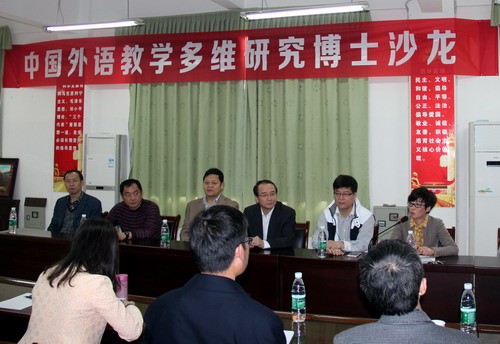 此次博士沙龍由外國語學院院長韓琨主持,教務處馬明亮處長、外國語學院楊杰書記、外國語學院教學科研骨干教師等參加。博士沙龍從外語教學實踐到現代化英語教學理念再到英語教學最高層目標等多維度進行了外語教學的探討。具體有羅凌博士從英語教學實踐角度出發,基于二語習得理論,結合行動研究對外語教與學的本質,進行了深入研究與剖析;有戴朝輝博士關于英語信息化學習,基于MOOC理念對大學英語翻轉課堂的研究;還有黃芳博士對英語教學高階目標,培養大學生英語學習批判性思維的研究。博士沙龍中,外國語學院楊節之教授作為九江學院十二五重點學科帶頭人,展示了外國語學院網絡資源建設成果,并演示了“英語視聽說”網絡平臺。博士團從實踐到理論全方位,深入淺出地與我校外國語學院的教師們分享了外語教學最新研究動態,還與外國語學院教師進行了深層次交流。