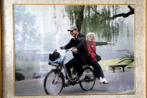 潘際鑾院士還贈送我校師生一幅照片,祝愿全校師生員工“五一”佳節快樂、健康向上。照片中可見:88歲高齡的潘院士騎著一輛輕便的電動自行車,后座上帶著 84歲的妻子李老師,幸福地行進在美麗的清華園。