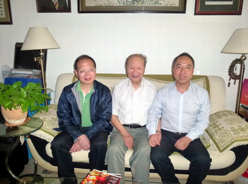隨后,甘校長一行還拜訪了著名歷史學家、清華大學國家級“出土文獻和中國古代文明研究協同創新中心”主任李學勤先生。李學勤先生熱情接待了甘校長一行,并再次祝賀甘校長團隊去年獲得季羨林基金會頒發的“國學傳承與創新”獎。甘校長向李學勤先生詳細介紹了“中華經典公理化詮釋”研究的創意、特點、目標和系列成果。李學勤先生充分肯定這項研究的開拓性及其價值,認為它對于推動中華古代經典的現代閱讀,尤其是對提升“國學”在海外的影響力,有很好的促進作用。