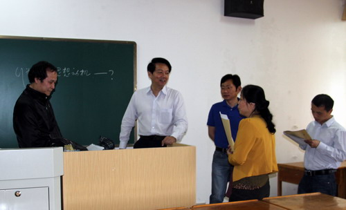 隨后,鄭書記與隨同聽課的教務處、思政部的負責同志及教師就推進思政課教學改革進行了探討。鄭書記指出,馬克思主義原理是一門比較難講的課,理論邏輯性較強,要善于利用原理來剖析現實問題及社會現象,將理論與實踐結合起來,挖掘教材、整合內容、增加信息量,不斷提升思政課的教學效果。
