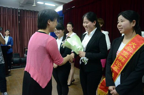 辯論賽結束后,校團委負責同志、全體評委為獲獎團隊和個人分別頒獎。土建學院、信息學院、會計學院、政法學院、基礎醫學院、經管學院、外國語學院及電商學院等8個二級學院團委榮獲優秀組織獎。信息學院A1311班二辯吳旖旎同學榮獲全程辯論賽最佳辯手。