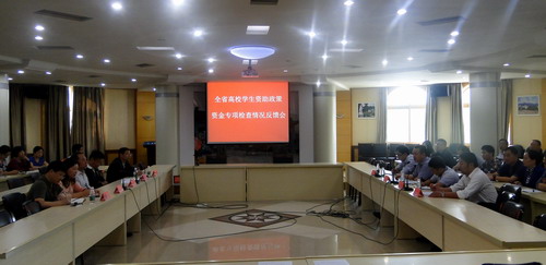 檢查期間,檢查組通過調閱檔案、問卷調查、召開座談會、調閱財務憑證等方式,對我校近幾年來學生資助政策資金落實情況進行全面、細致的檢查。檢查組對我校近900名同學進行了隨機問卷調查,抽查了6個學院2011-2014年國家資助相關的材料,召開了近600名勵志獎學金學生代表參加的座談會。