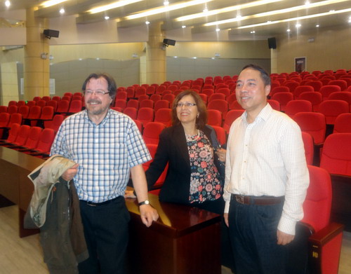 5月14日上午,甘筱青校長陪同法國普瓦提埃大學客人參觀了八里湖校區。八里湖校區管理辦公室、體育學院、政法學院相關領導及工作人員陪同參觀。