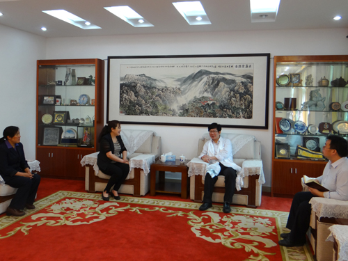 宣講會前,副校長王萬山熱情接見了2015年西部計劃西藏宣講團團長、共青團西藏自治區委員會權益部副部長扎西卓瑪,副團長、共青團昌都市委員會副書記扎西卓瑪及宣講團成員一行,對宣講團成員不遠萬里來到學校進行宣講表示衷心的感謝,王副校長向宣講團成員介紹了學校的情況。他指出,學校很重視西部計劃工作,我校2014屆一名學生正在西藏日喀則當西部計劃志愿者,九院志愿者的成長包含著西藏自治區團委在內的各級團組織的關心和幫助,學校黨政將繼續大力支持校團委做好西部計劃的組織招募工作。