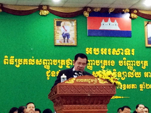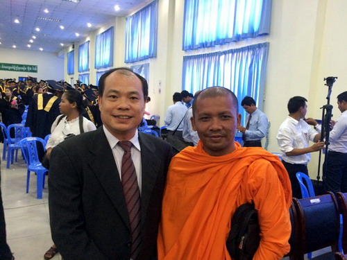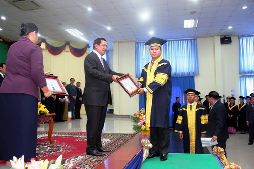 5月11日,柬埔寨亞歐大學舉行2015年度畢業(yè)典禮,柬埔寨政府洪森總理(H. E. HUN SEN)發(fā)表演講并親自為畢業(yè)生代表頒發(fā)畢業(yè)證書。