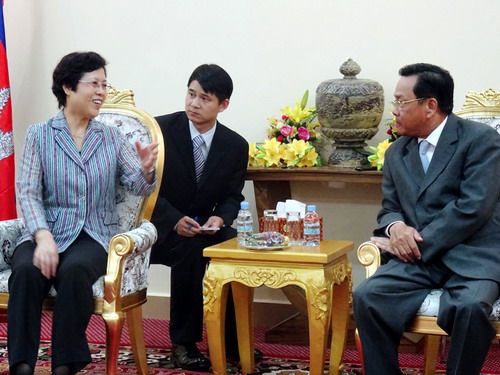 她表示,當前,隨著中國國際影響力的提升和對外交流的擴展,漢語已成為世界第二大通用語言,成為一門深受各國人民喜愛的“全球性”語言,中國以外的漢語學習者迄已逾億人。在柬埔寨,“漢語熱”也持續升溫。我們欣喜地看到,在柬埔寨政府和社會各界的關心支持下,王家研究院孔子學院不斷發展壯大。如今,孔子學院的漢語教學已走出王家學院,走進參議院、內閣辦公廳、政府部門、軍隊警察、學校及地方省市,融入柬埔寨社會多個層面,全面服務于兩國友好合作。今天,孔子學院勞工部漢語中心正式揭牌,相信將為勞工部官員們打開一扇學習漢語以及了解中國的窗口。希望你們勤學苦練,扎實掌握這門重要的語言,這將有助于你們更多了解中國的社會文化,同時也便于更好與眾多來柬投資興業的中資企業和中國公民溝通交流,進一步增進彼此理解,促進雙方合作。