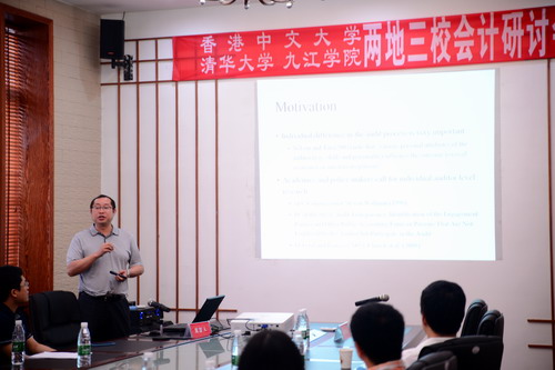 研討會Research Workshop2由香港中文大學會計學院Yong George Yang教授主持。會上,清華大學經管學院李馨子博士圍繞“政府補助、約束性和未來盈余”進行報告交流,九江學院會計學院陳小林教授做了“The Effect of Individual Auditor Overseas Experience on Audit Quality: Evidence from China”的論文報告。香港中文大學會計學院教務科長Wong Ka Lok和九江學院會計學院副院長蔡報純,分別就情景案例教學、課程建設、教學方法、教學管理、人才培養特色等進行了專題報告。