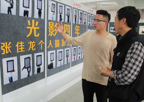 校黨委書記鄭翔對此次展覽的作品給予了高度評價,在參觀中,鄭書記對部分作品與張佳龍進行親切交流,贊揚了張佳龍同學這四年取得的優(yōu)異成績和在攝影立意和構思上的突破,肯定了他創(chuàng)作題材的廣度和作品的思想深度,并就作品取名提出了寶貴建議,鼓勵他在今后的人生道路上繼續(xù)開創(chuàng)屬于自己的新方向和目標。參觀結束時,鄭書記現(xiàn)場欣然為張佳龍攝影展題字:“鏡焦無淺見,圖照有深思”,希望他今后拍攝和創(chuàng)作出更多更有特色和意義的作品,勇敢追逐屬于自己的夢想。