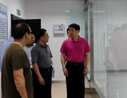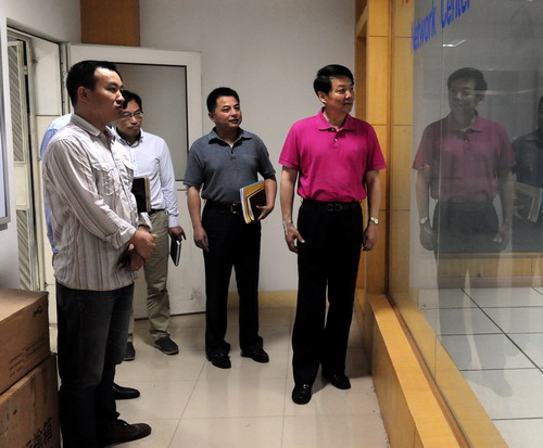 6月9日上午,校黨委書記鄭翔在黨辦主任劉遵海的陪同下到信息技術中心檢查指導工作。鄭書記對信息技術中心近期工作給予了肯定,對信息技術中心今后的建設發展進行了現場指導。信息技術中心副主任舒長興向鄭書記匯報了近期的工作,并陪同參觀了中心網絡數據中心、虛擬演播室、動漫設計室、錄音工作室,以及新建完成的錄播室等。