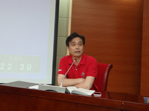 6月11日下午,學(xué)校“三嚴(yán)三實(shí)”專題黨課暨學(xué)習(xí)研討會(huì)在逸夫圖書(shū)館報(bào)告廳隆重舉行。校黨委書(shū)記鄭翔主持黨課暨學(xué)習(xí)研討會(huì),校長(zhǎng)甘筱青為全校副處級(jí)以上干部上“三嚴(yán)三實(shí)”專題黨課。副校長(zhǎng)吳桃娥、王萬(wàn)山、陶春元、楊焱林、魏立平、楊耀防與全校副處級(jí)以上干部一起參加了會(huì)議。