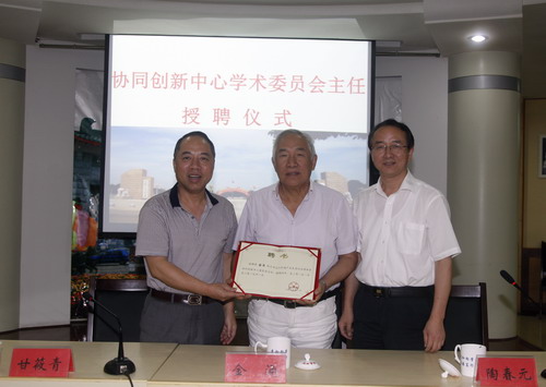 會(huì)上,甘校長(zhǎng)用“廬山之麓、長(zhǎng)江之濱、鄱湖之畔”十二字介紹了九江學(xué)院所處的特色地理位置,著重介紹了我?!吧浇睂W(xué)科群建設(shè)工程,以及近年來(lái)學(xué)校在人才培養(yǎng)、科學(xué)研究、服務(wù)地方經(jīng)濟(jì)、文化傳承等方面所取得的成就。甘校長(zhǎng)對(duì)金院士大力支持我校協(xié)同創(chuàng)新中心的建設(shè)表示感謝,并為金院士頒發(fā)了九江區(qū)域產(chǎn)業(yè)生態(tài)化支持體系協(xié)同創(chuàng)新中心學(xué)術(shù)委員會(huì)主任的聘書。