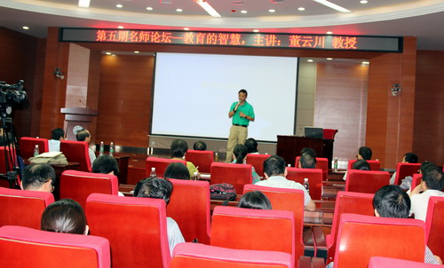 董云川教授主要研究方向涉及“高等教育學”、“管理哲學”和“生存智慧”三大領域。此次報告,董教授以自己多年來對高等教育的研究和一名高校教師的切身體會感悟出:做教育真好(功德感);做教育真累(責任感);做教育真難(藝術感)。品德高尚的教師對學生的教育力量是巨大而深遠的,因而育人是點燃人心的功德事業。教師工作的“示范性”和學生所特有的“向師性”,使教師在學生心目中占有非常重要和崇高的位置,對學生有著熏陶誘導和潛移默化的影響,所以教師應有高度的職業責任感,這將支撐著教師的教育行為。教學是一門藝術,而藝術是無止境的,需要教師不斷去創造、豐富,教師在教學過程中不僅要求學生“學會”,更要求他們“會學”,教學就是要使學生達到豐富知識、純正心靈、舒暢胸懷的藝術境界。董云川教授還引用傳統文化中的處世哲學對教師個人心理狀態進行了分析,鼓勵教師應擁有積極進取的人生態度,將教育事業當作最崇高的工作與最大樂趣,并為之不懈努力和追求。
