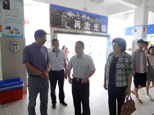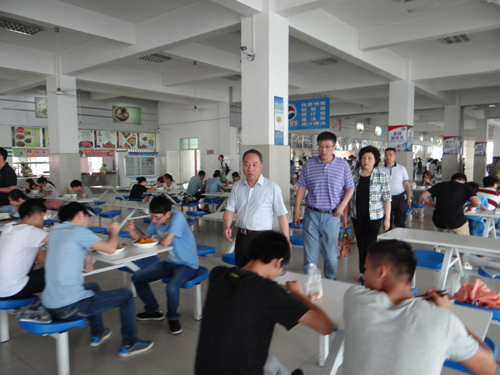 6月18日中午,校長甘筱青、副校長吳桃娥來到學生三食堂檢查指導工作,看望昨夜加班的食堂工作人員,并到學生中間了解同學們的情況。后勤管理處處長姜東升隨同檢查。
