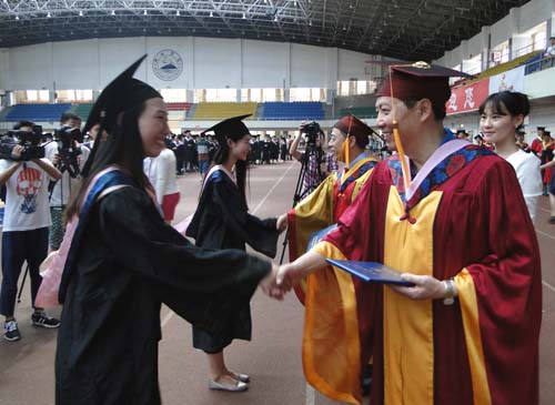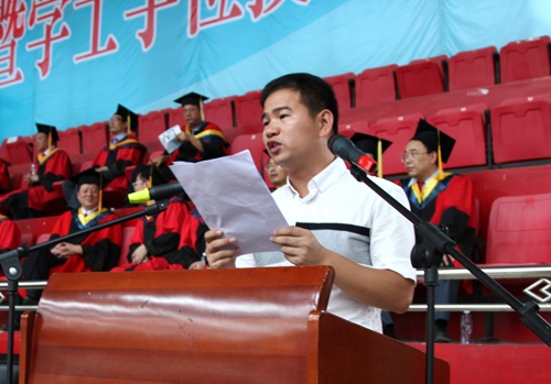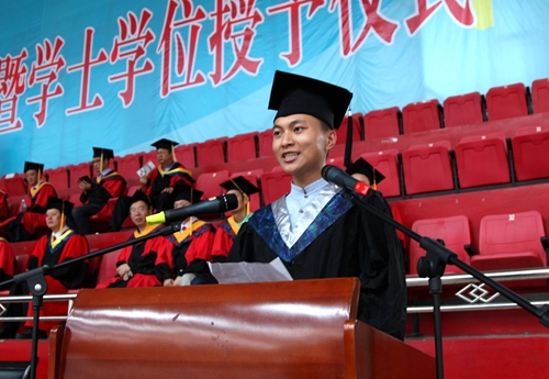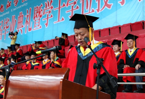 在典禮儀式上,副校長陶春元宣讀了我校“2015屆畢業生名單”;副校長楊焱林宣讀了“關于授予王小龍等5686名畢業生學士學位的決定”。我校2015屆畢業生11088人,其中本科學生5537人,專科學生5329人。