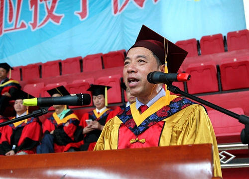 甘校長代表學校對2015屆畢業生提出希望和祝愿:要始終心懷理想。志存高遠,在時代發展中和社會實踐中不斷完善自己,為實現國家富強、民族振興、人民幸福的偉大“中國夢”而奮發圖強。要不斷追求真理。要立德立品,保持充足信心,愛崗敬業,誠信為人,勤勉工作,服務社會,在各個崗位上做出不平凡的業績。要勇于創新創業。要進一步發揮創新思維和創業精神,讓創新融入血脈,讓創業成就未來!要傳承優秀文化。思索和恪守做人做事做學問,在廣闊天地里建功立業。