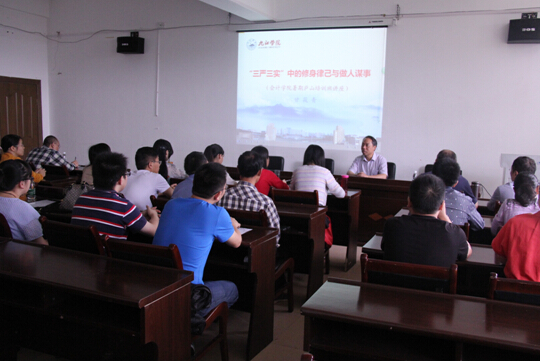 7月19日上午,甘筱青校長出席會計學院暑期廬山培訓班,并做了題為《“三嚴三實”中的修身律己與做人謀事》的專題報告。會計學院院長陳小林、黨委書記吳鈴、副院長蔡報純,會計學院各教研室、科室負責人及教師40余人聆聽了報告。