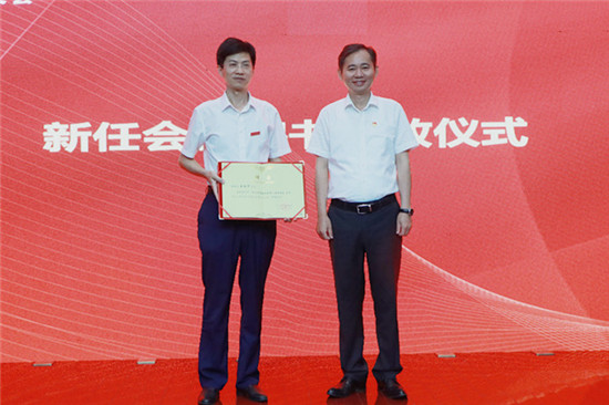 趙偉向新任會長頒發(fā)聘書。陳小林為新任副會長、秘書長頒發(fā)聘書。