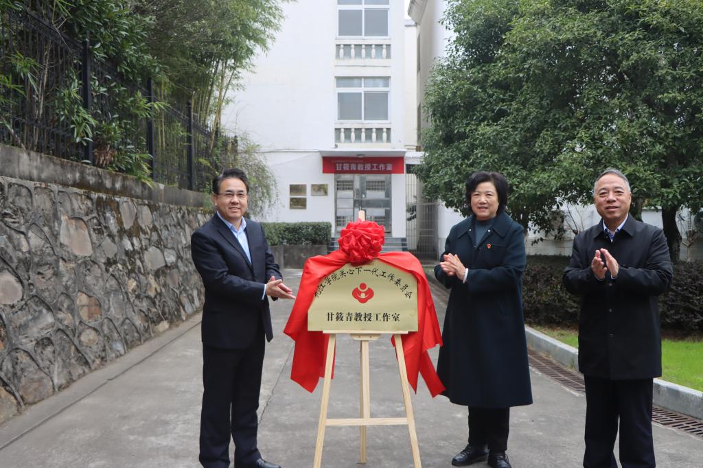 11月15日上午,九江學院關工委“甘筱青教授工作室”揭牌儀式在丹楓園外專樓前舉行。校黨委書記李明斌出席儀式并為工作室揭牌。校黨委委員、副校長魯衛東,校黨委委員、宣傳部部長劉平,校黨委委員、組織部部長楊杰參加活動。掛牌儀式由校關工委執行主任吳桃娥主持。